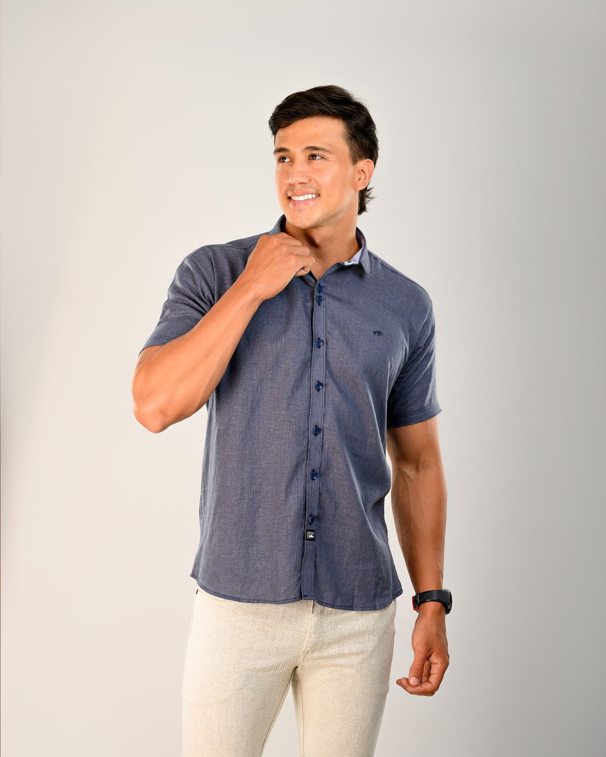 CAMISA DE MANGA CORTA EN TELA DE LINO