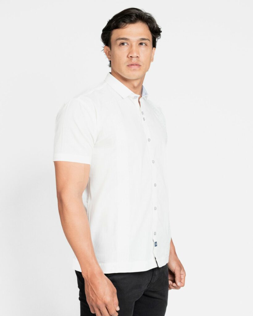 Elaborada en 100% algodón, con bolsillo de ribete funcional. Cuello y mangas tejidos a tono y botones de pasta que completan su diseño con un toque de distinción.