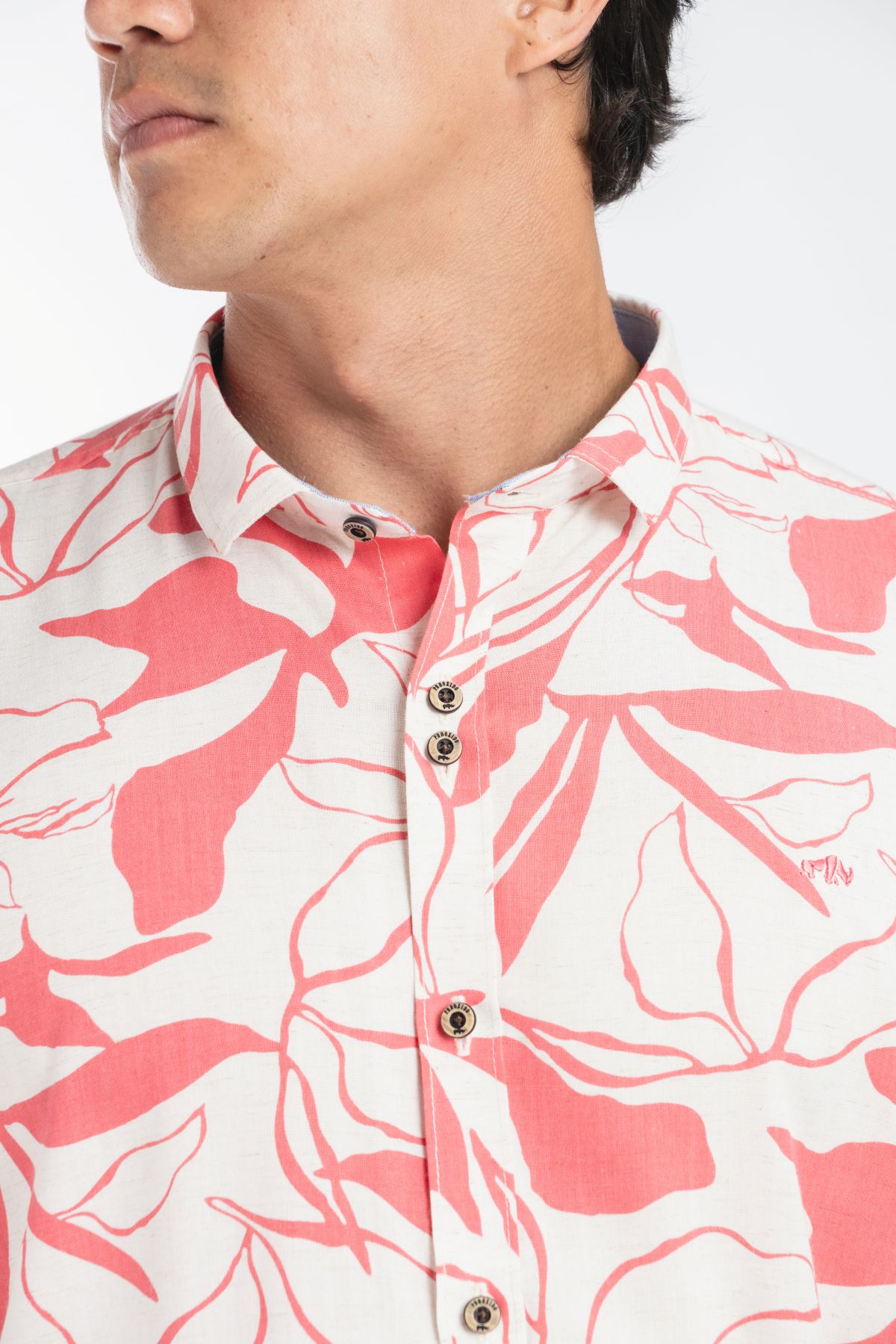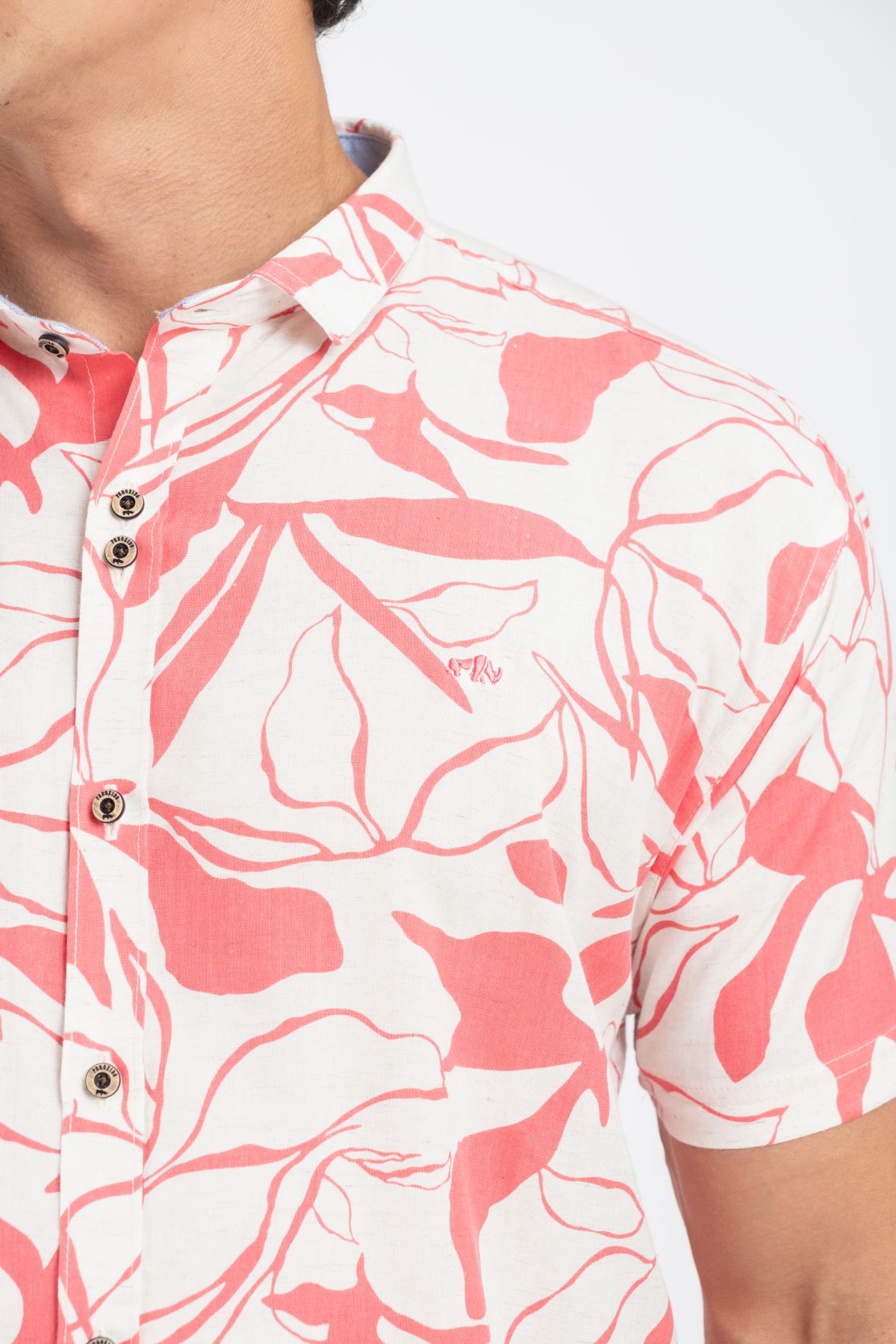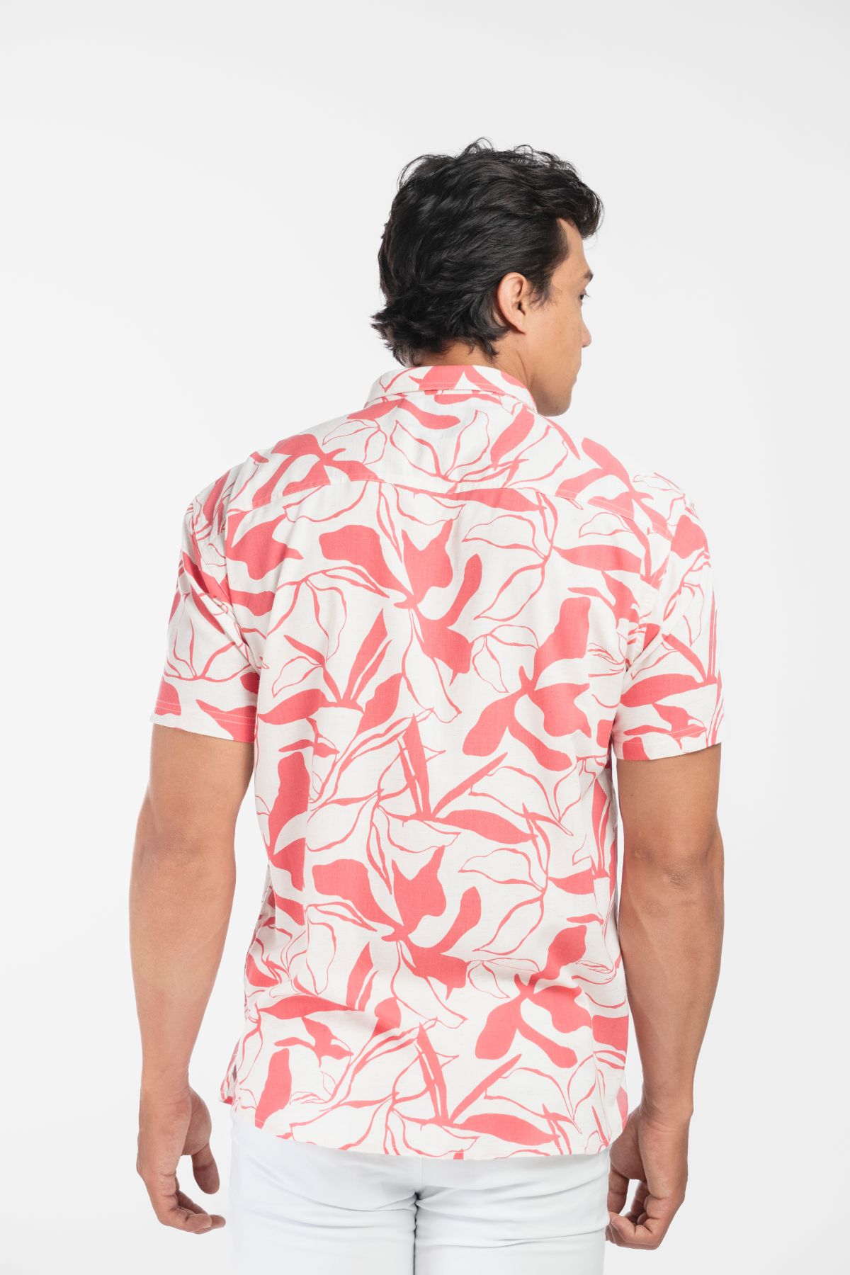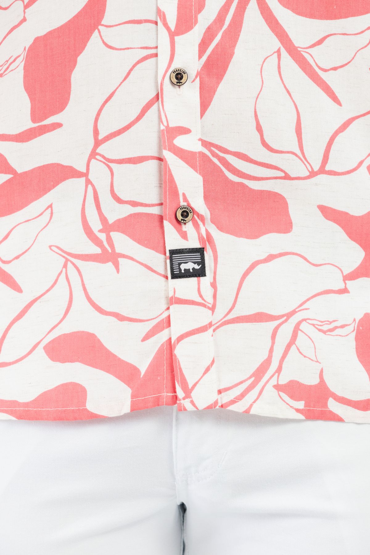 Elaborada en tela de lino con un fino estampado y excelentes acabados. Sin bolsillos, cuenta con botones de pasta, combinando elegancia y estilo en un diseño limpio.