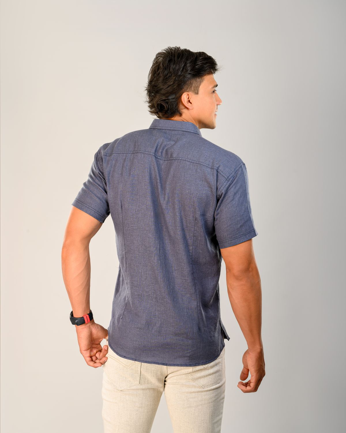 CAMISA DE MANGA CORTA EN TELA DE LINO