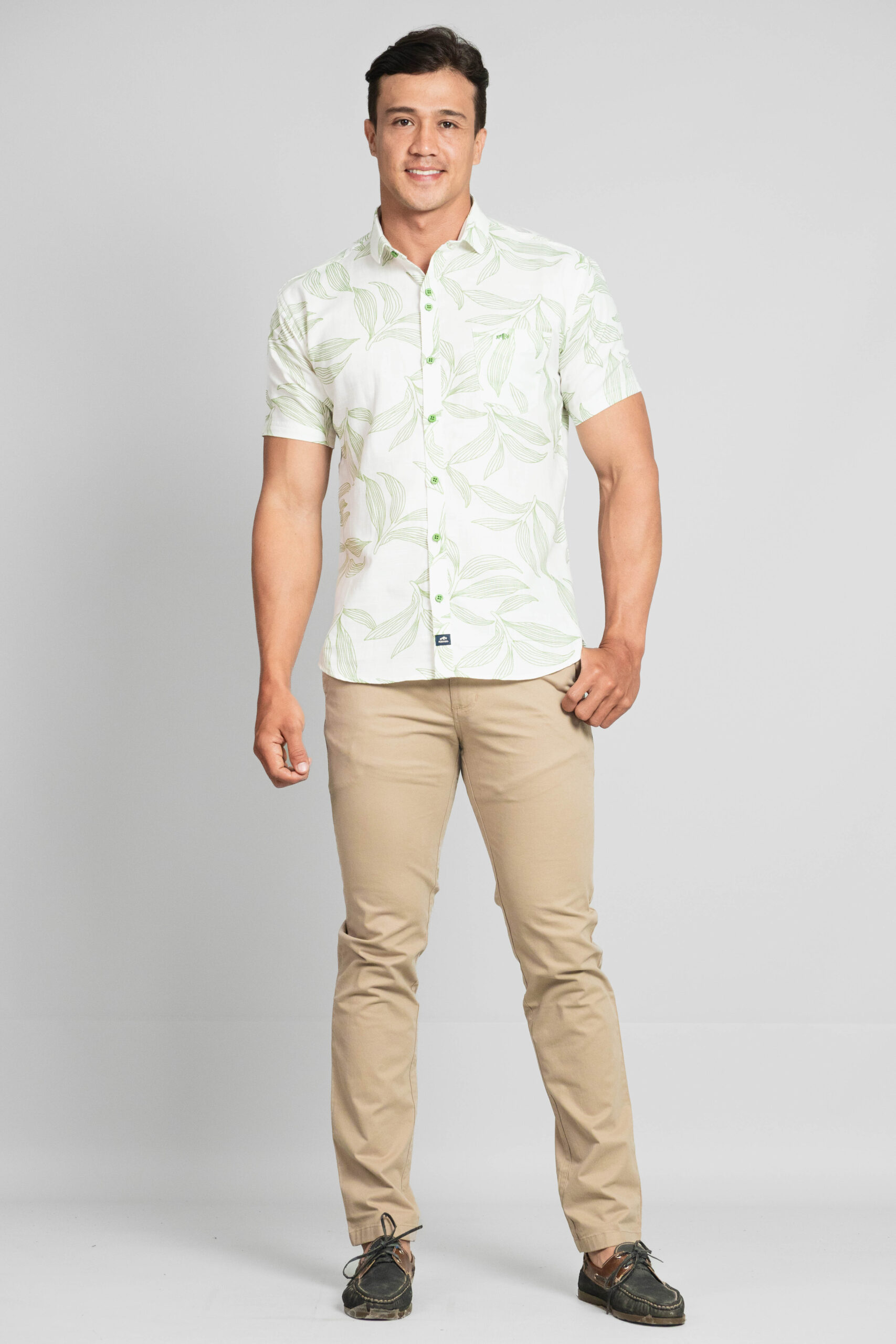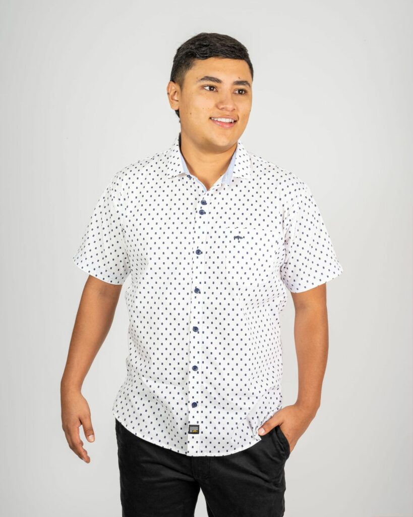 Confeccionada en tela suave y liviana de excelente calidad, cuenta con botones de pasta y un práctico bolsillo de parche que realza su diseño casual y moderno.