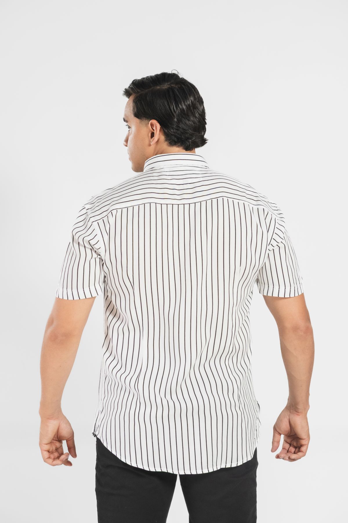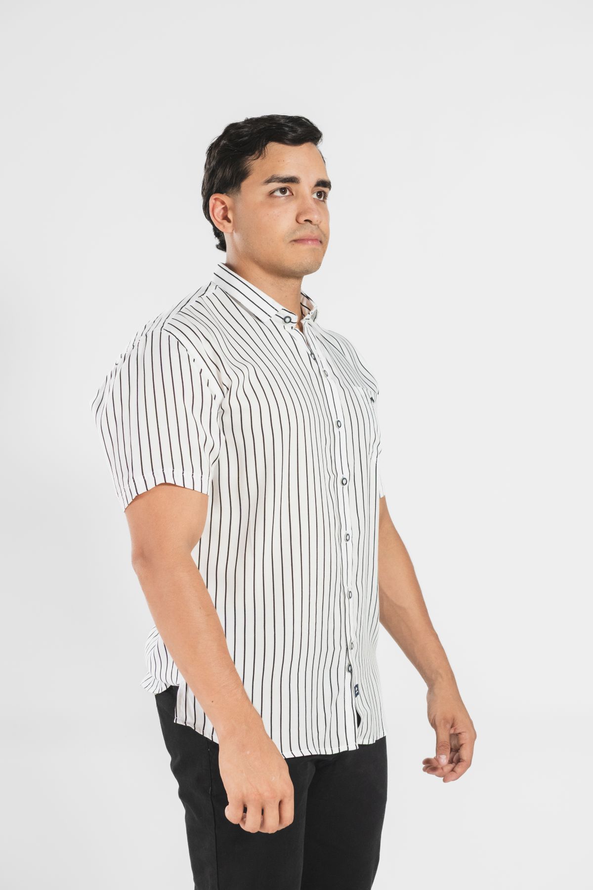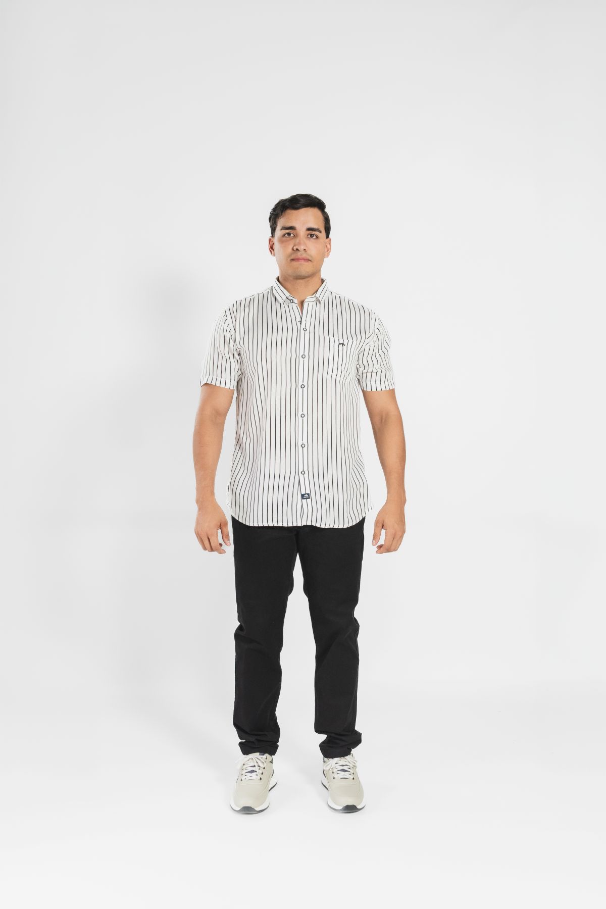 Camisa manga corta con diseño de rayas verticales que estiliza la silueta. Confeccionada en tela fresca y ligera, ofrece comodidad, elegancia y versatilidad para el día a día. Ideal para un look casual o smart casual.
