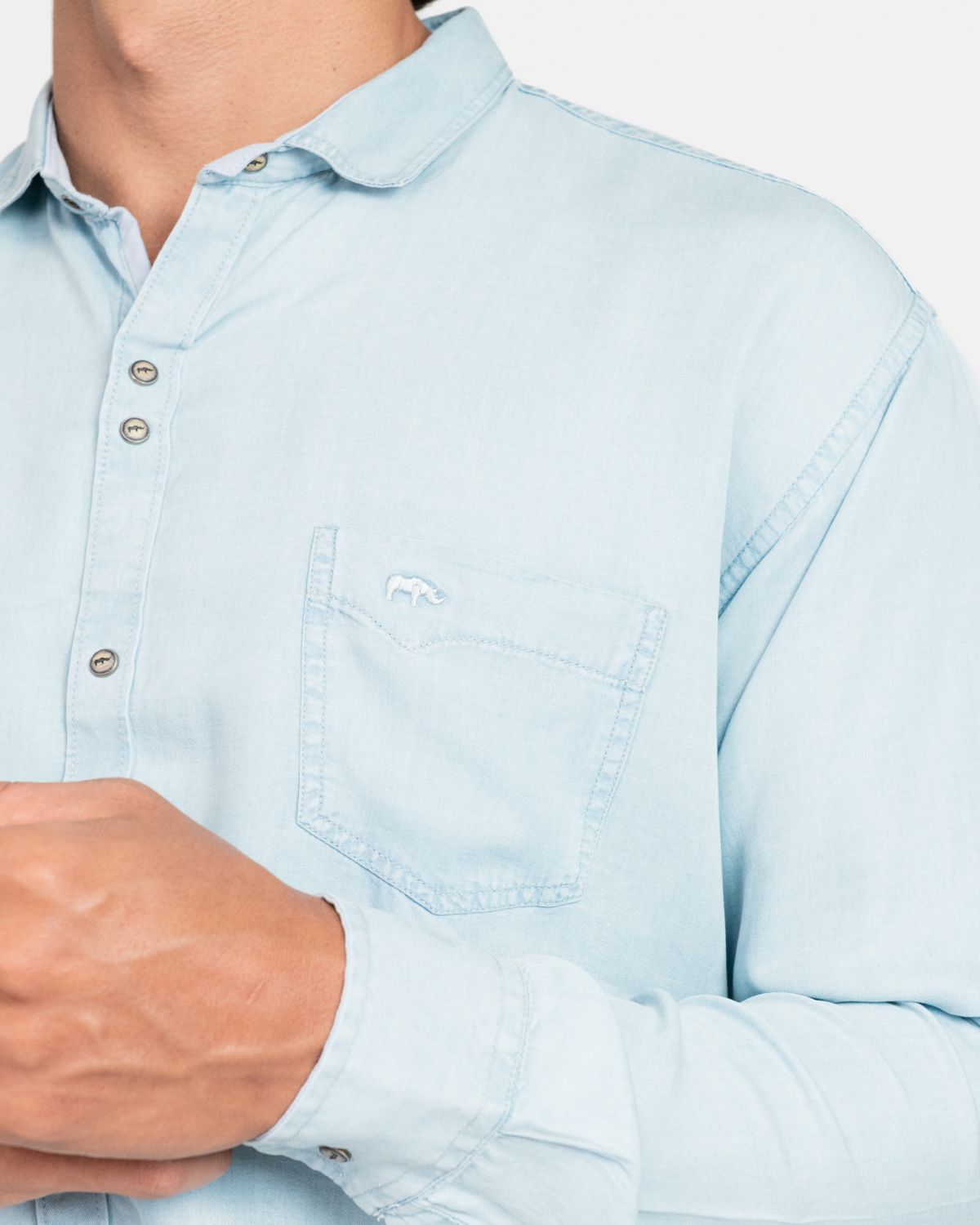 Confeccionada en fino Ìndigo tencel y adornada con botones de broche. Ideal para un toque de sofisticación y elegancia.