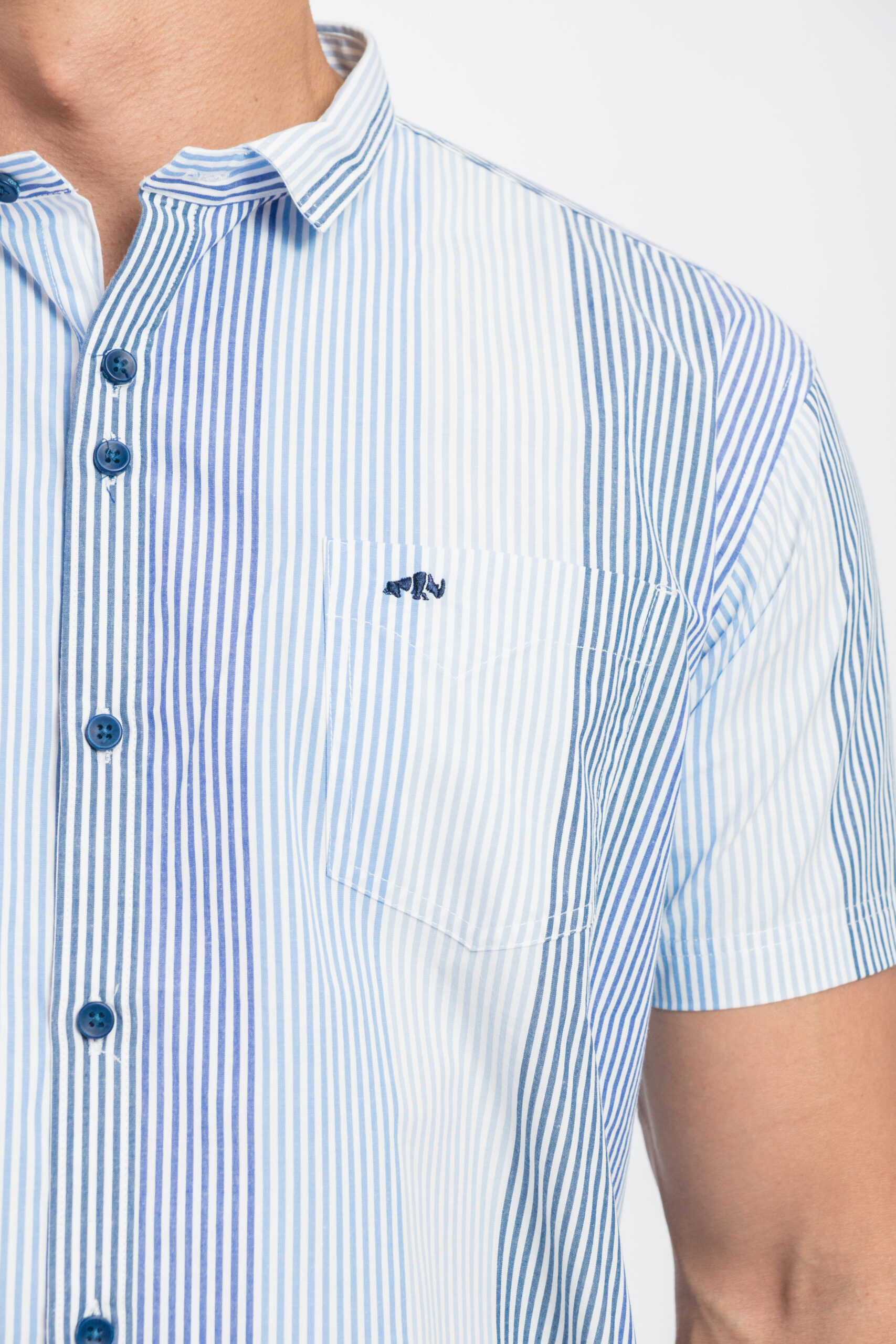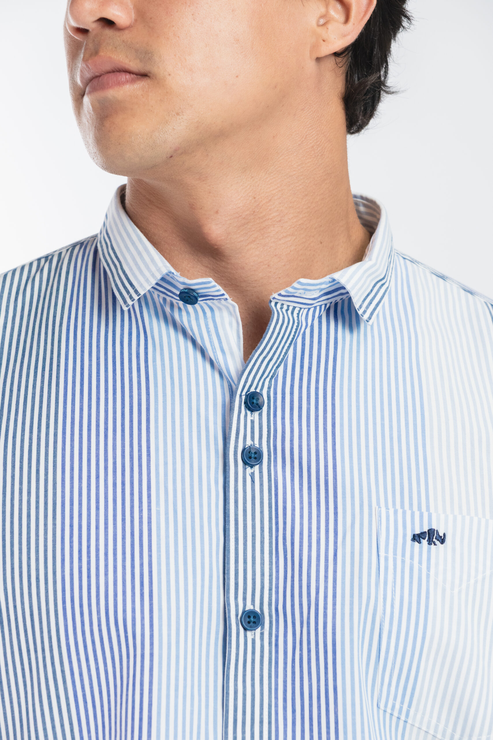 Esta camisa en algodón de alta calidad combina frescura, comodidad y un diseño moderno gracias a su patrón de rayas verticales que estiliza la figura y aporta un look limpio y versátil. Su bolsillo tipo parche añade un toque funcional y casual, mientras que los botones en tono contraste elevan el detalle visual de la prenda. Con un fit cómodo y ligero, es ideal para días cálidos, salidas informales o looks semi–casuales que buscan verse pulidos sin perder naturalidad.