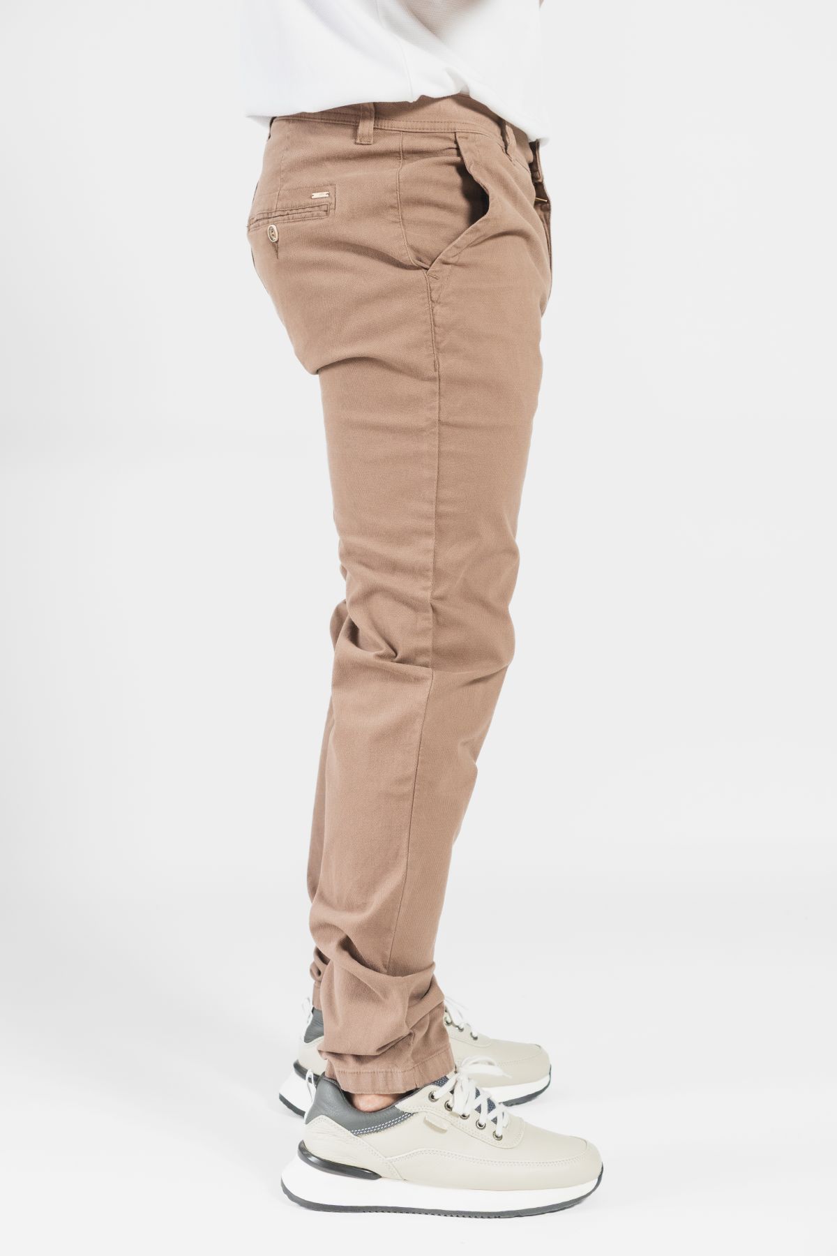 Pantalón en dril texturizado con spandex, diseñado para ofrecer un equilibrio perfecto entre estilo y comodidad. Su tela flexible brinda mayor libertad de movimiento, mientras que el bolsillo trasero de ribete funcional aporta un acabado elegante y práctico. Ideal para un look versátil, moderno y bien estructurado, tanto casual como semiformal.
