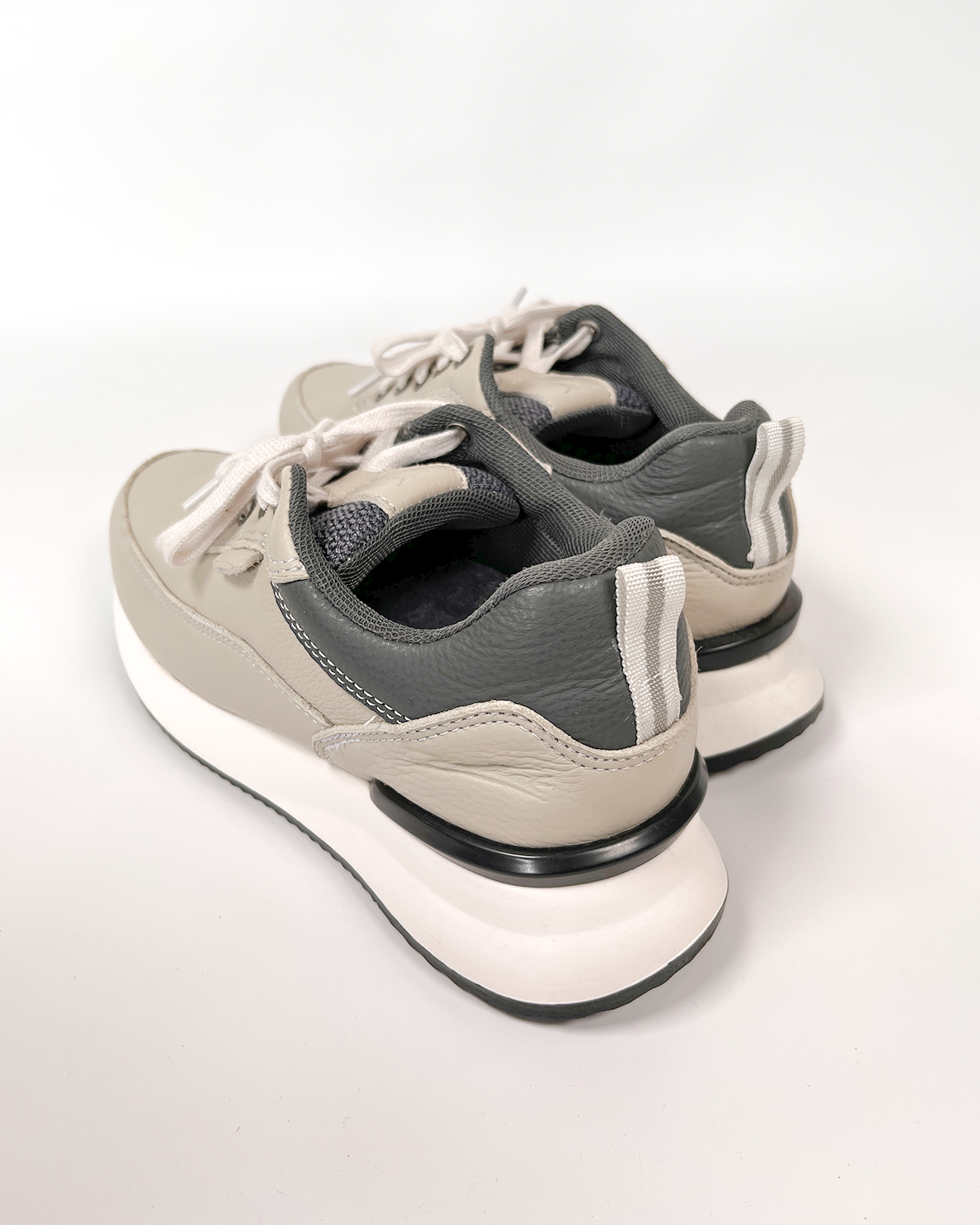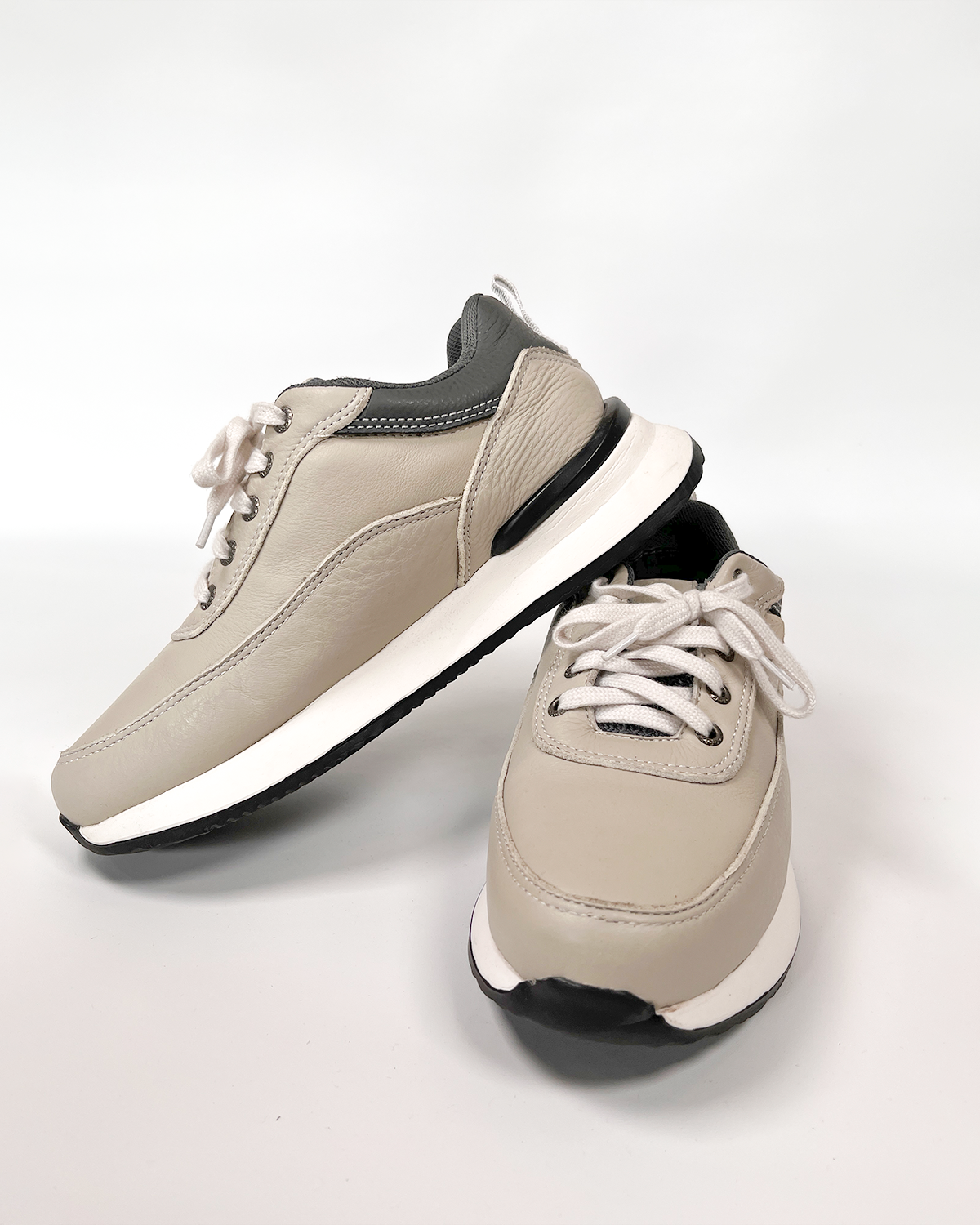 Un diseño moderno que combina minimalismo, comodidad y versatilidad. Estos tenis en cuero tono blanco con detalles en gris ofrecen un estilo limpio y sofisticado, ideal para looks casuales o urbanos. Su suela ligera y ergonómica brinda mayor confort durante todo el día, mientras que su contraste de colores aporta un toque contemporáneo perfecto para cualquier ocasión.