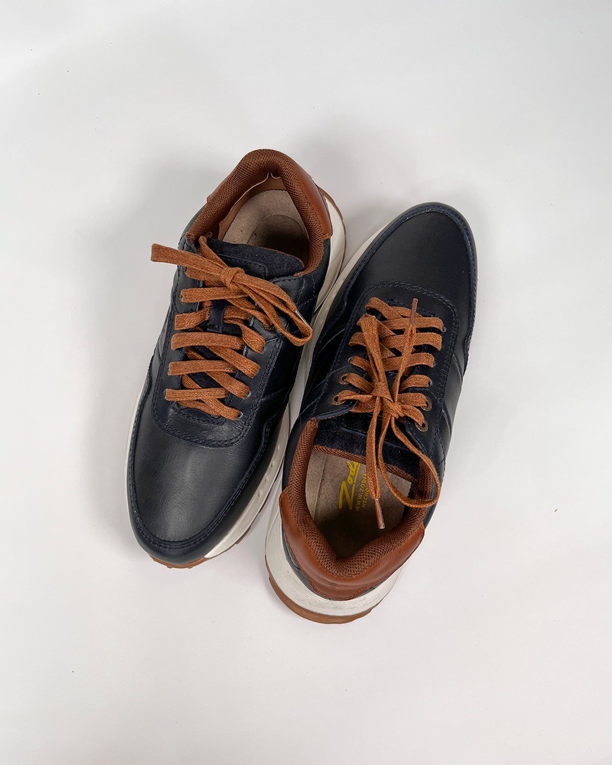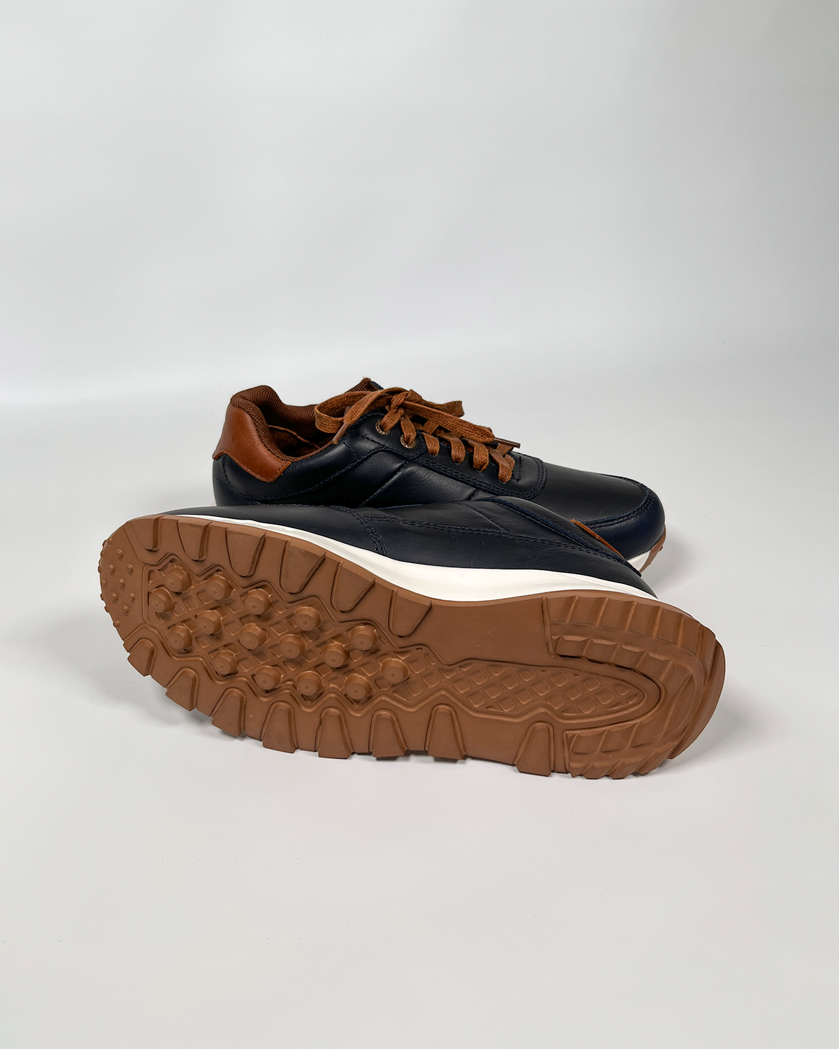 Un diseño que combina elegancia y comodidad en cada paso. Estos tenis en cuero azul profundo con detalles en miel ofrecen un estilo casual sofisticado, perfectos para hombres que buscan versatilidad y buen gusto. Su suela ligera y ergonómica brinda confort durante todo el día, mientras que el contraste de colores aporta un toque moderno ideal para outfits urbanos o smart casual.